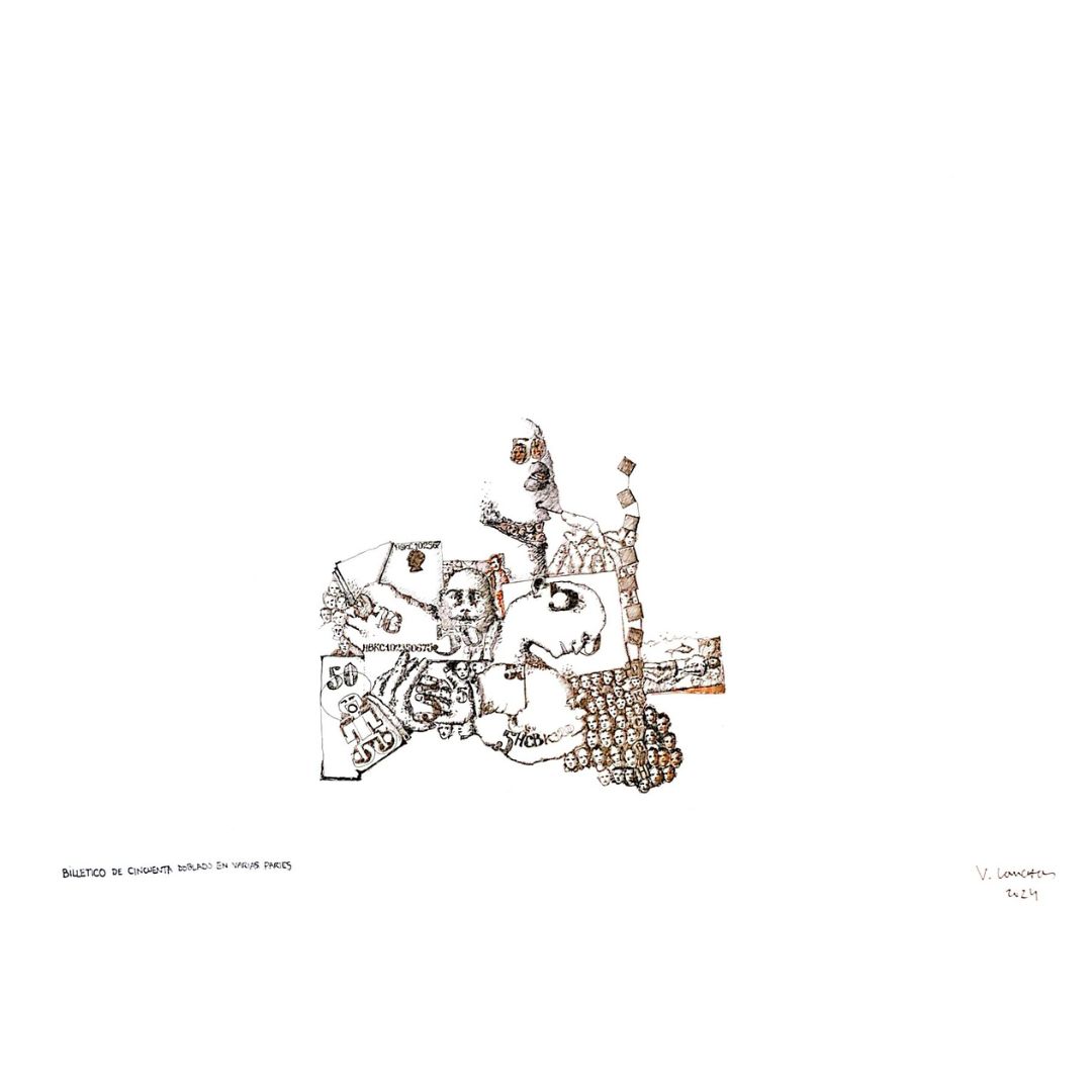 Billetico de cincuenta doblado en varias partes